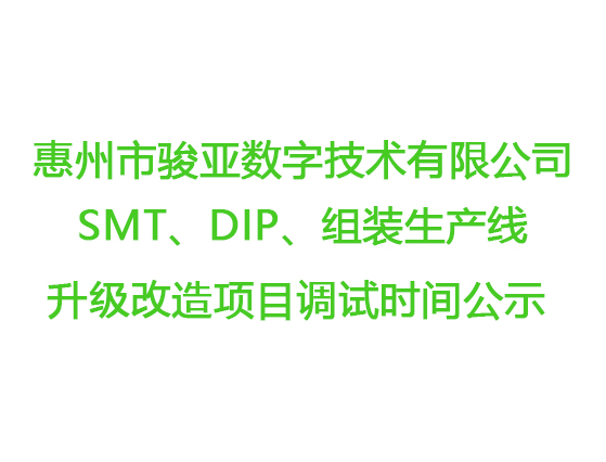 惠州市駿亞數(shù)字技術(shù)有限公司SMT、DIP、組裝生產(chǎn)線升級改造項(xiàng)目調(diào)試時(shí)間公示